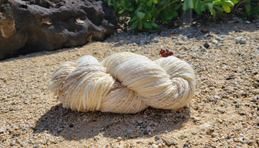This trio of handspun and crocheted tapestries is a meditation on the colors and textures that greet me at the ocean’s edge here in Hawaii. When I stand on the shore, I feel a softness in my reflections, a moment of ease and connection. There’s a power that the ocean holds to tell stories of movement, memory, and place. I believe that art does this as well.